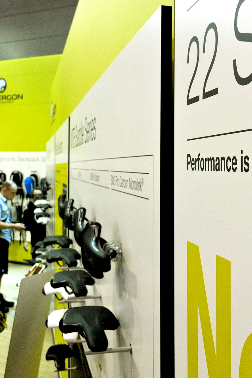Umgestaltung eines bestehenden Messestands und Erweiterung um unterschiedliche Erlebnisstationen für einen Distributeur der Fahrradbranche.